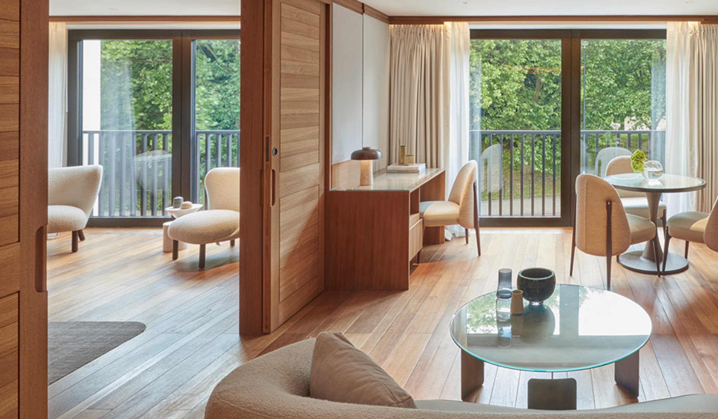 The Guarda Golf Hotel can be found in Crans Montana, a Swiss ski haven renowned for its pristine golfing conditions. Its grand yet cosy interior nods homage to its alpine surroundings, with materials such as European cherry tree wood, lustrous patina-coated brass, and timeless natural stone.